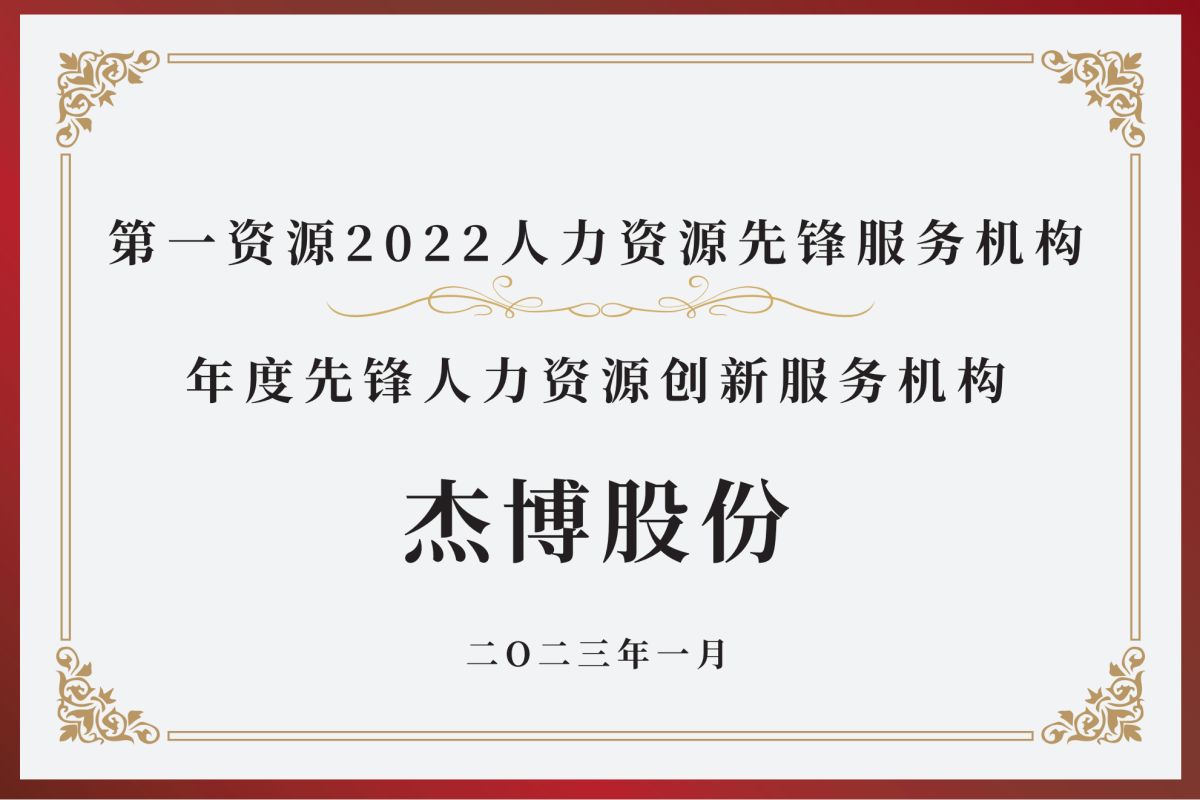 杰博股份,秉持“賦能產(chǎn)業(yè)、成就人才”的使命,致力于成為一家顧問式、綜合性的人力資源服務(wù)機(jī)構(gòu)。為客戶提供:高素質(zhì)干部隊(duì)伍服務(wù)(人才咨詢、人才測評(píng)、人才獵頭、人才培養(yǎng)、出海人才)、高水平創(chuàng)新型人才和企業(yè)家隊(duì)伍服務(wù)(企業(yè)家教練、科技人才獵頭、科技項(xiàng)目引進(jìn)、科技項(xiàng)目賦能、人才培訓(xùn)、產(chǎn)教融合、退伍軍人就業(yè)賦能、隨軍家屬就業(yè)賦能)、高素質(zhì)勞動(dòng)者隊(duì)伍服務(wù)(靈活用工、出海人力、勞務(wù)派遣、招聘流程外包、業(yè)務(wù)外包、小杰閃查、技能培訓(xùn))以及增值服務(wù)(福利產(chǎn)品定制、“智能招聘”平臺(tái)、“業(yè)財(cái)一體化”平臺(tái)、政府產(chǎn)業(yè)發(fā)展服務(wù)、電力用戶效能提升服務(wù))等。 杰博股份,業(yè)務(wù)布局始終圍繞“成就所有人的JOB”這一愿景,以員工內(nèi)在的素質(zhì)、技能提升和企業(yè)管理、科技水平提升為兩個(gè)路徑,高質(zhì)量服務(wù)人力資源市場供需兩個(gè)主體,為客戶創(chuàng)造更多價(jià)值,助力客戶業(yè)務(wù)的提升。 多年的砥礪前行,離不開客戶的厚愛。在未來的發(fā)展歷程中,全體杰博人將秉執(zhí)“簡單 快樂 言行一致 財(cái)富共享”的價(jià)值理念,為客戶提供全方位、多層次、更優(yōu)質(zhì)的人力資源服務(wù)解決方案,與客戶和人才攜手共進(jìn),共創(chuàng)輝煌!