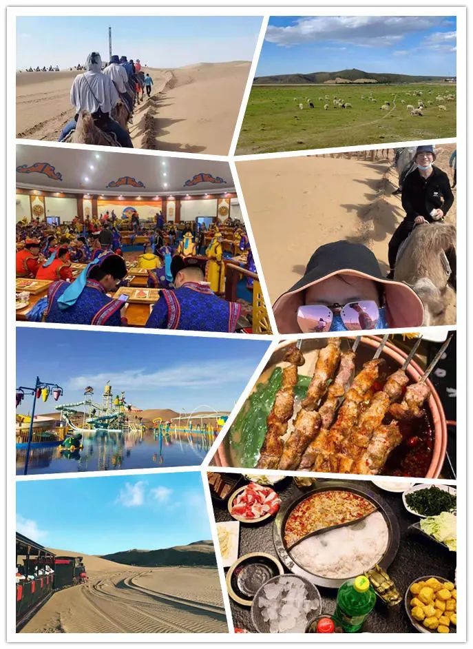 小伙伴們品嘗了大奶糕、烤全羊、牛肉干等當(dāng)?shù)貥O具特色的美食;游玩了騎馬、騎駱駝、坐沙漠越野車等當(dāng)?shù)靥厣幕顒?dòng)項(xiàng)目,并參加了篝火晚會(huì),入住了特色蒙古包。